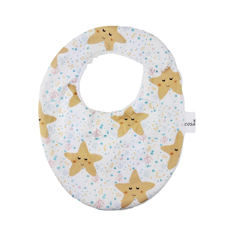 Babero para bebé hecho a mano de la colección exclusiva de cosamui de estrellas de mar.