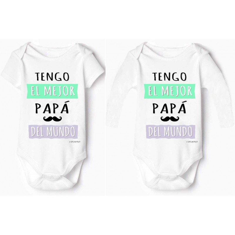 Body bebé manga larga y manga corta con la frase super graciosa de TENGO EL MEJOR PAPA DEL MUNDO. Un detalle super bonito para el día del padre o como regalo para el papá.