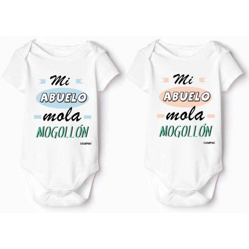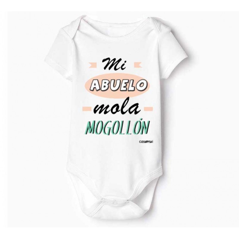 Bodys para bebé con frases personalizadas. Body con la frase mi abuelo mola mogollón!.