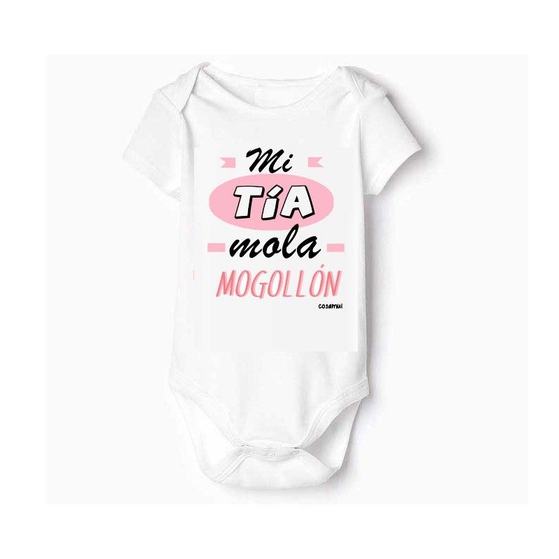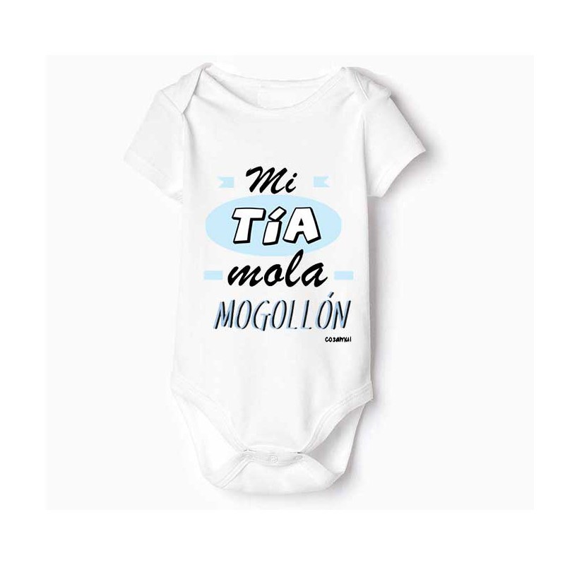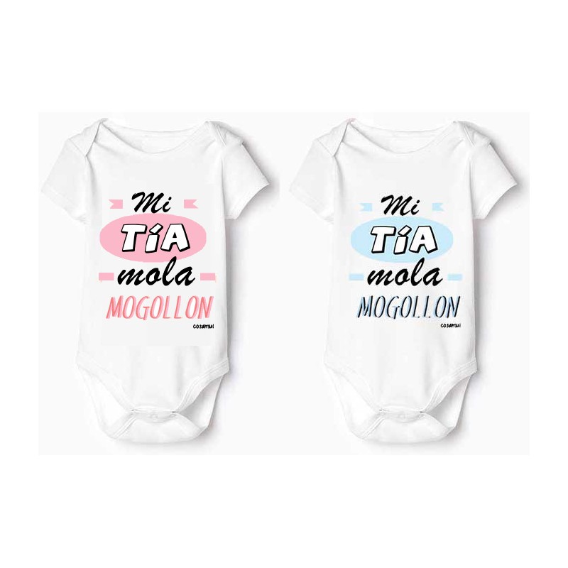 Bodie bebé personalizado para la tía, con la frase mi tía mola mogollón!. Un bodie original y gracioso en color azul y rosa.