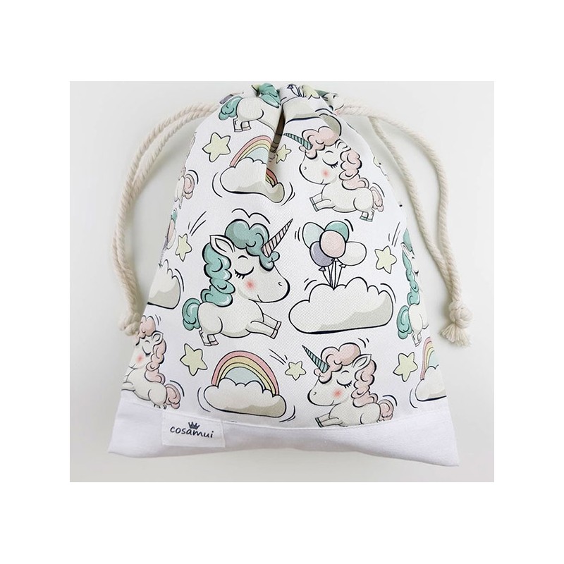 Bolsa para merienda para el colegio o la guardería con asas de la colección unicornio.
