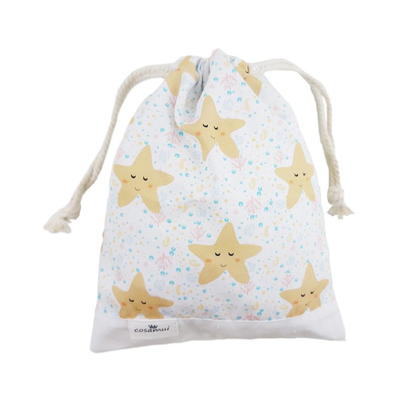 Bolsa para merienda para el colegio o la guardería con asas de la colección estrellas de mar.