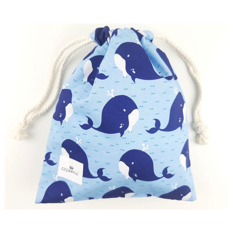Bolsa para merienda para el colegio o la guardería con asas de la colección ballenas.