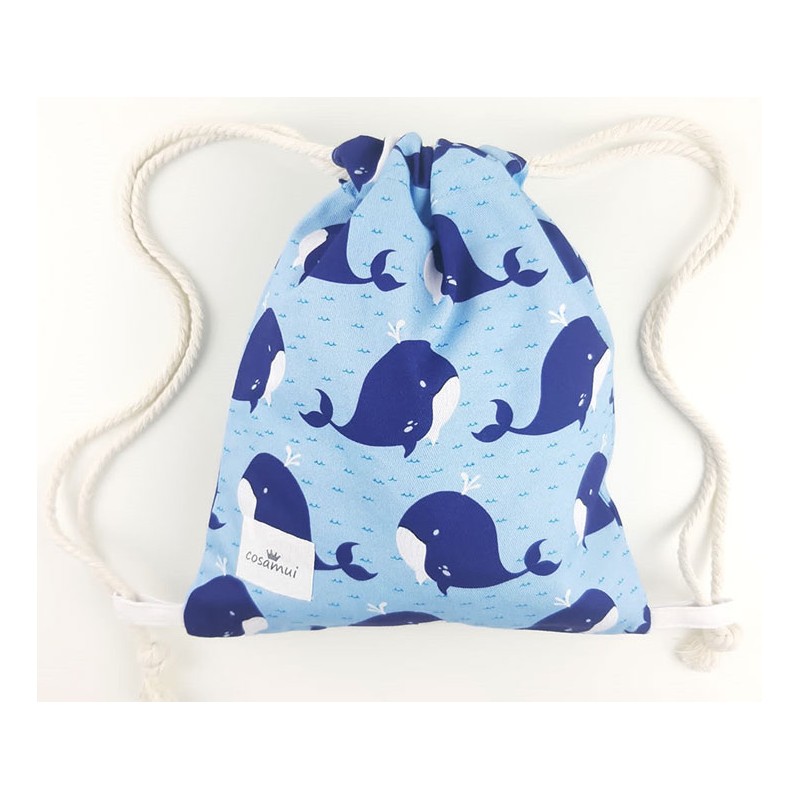 Bolsa para merienda para colegio o guardería de la nueva en tamaño infantil o tamaño adulto colección ballenas.