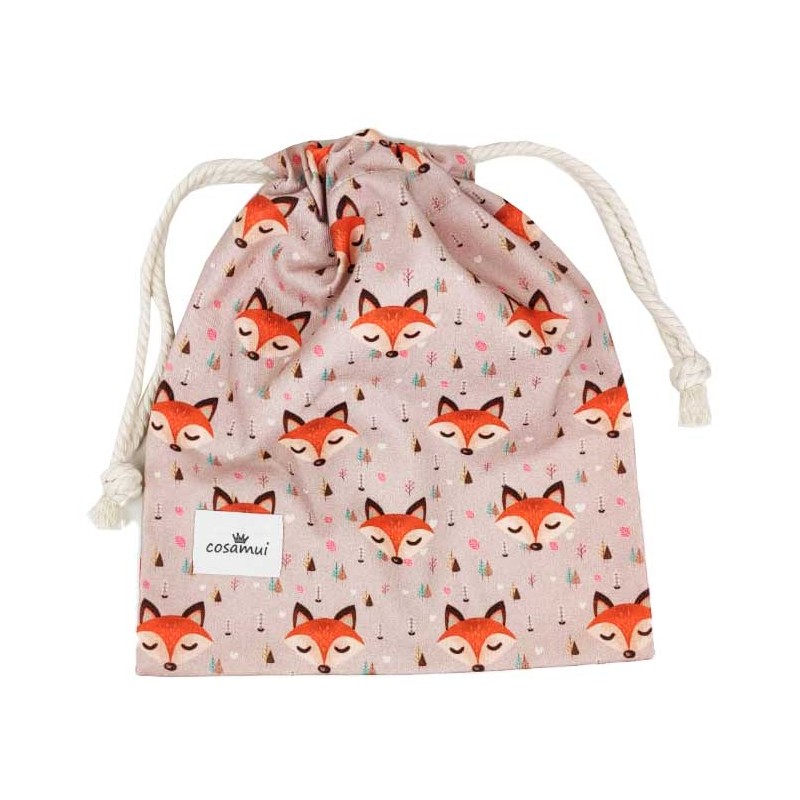 Bolsa merienda para la escuela infantil con la posibilidad de personalizar el nombre, para niño o niña. Colección zorros. Para llevar el almuerzo o merienda. El nombre va bordado.