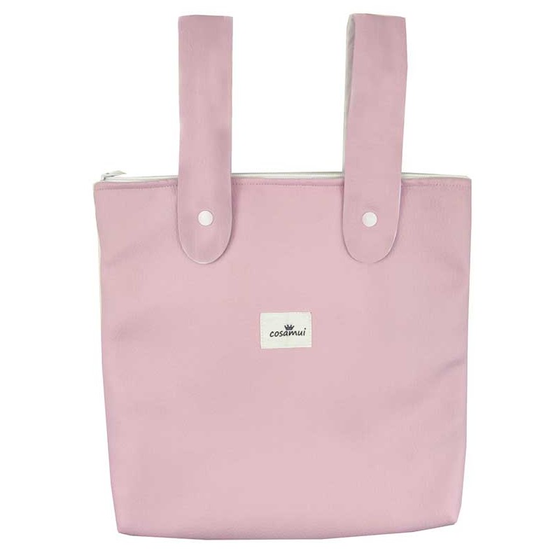 Bolso panera o talega para carrito bebé de polipiel en color rosa, también disponible en verde mint.