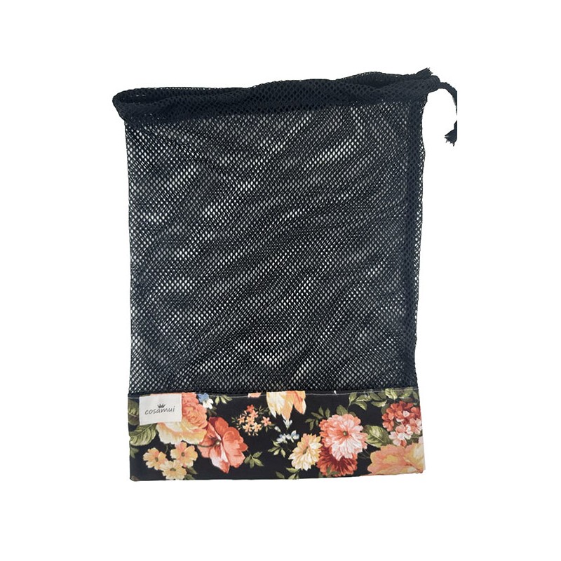 Fabricada en malla de poliéster de alta calidad, con cierre fácil de cuerda. Al ser de rejilla podrás comprobar de un vistazo rápido lo que tienes dentro.
