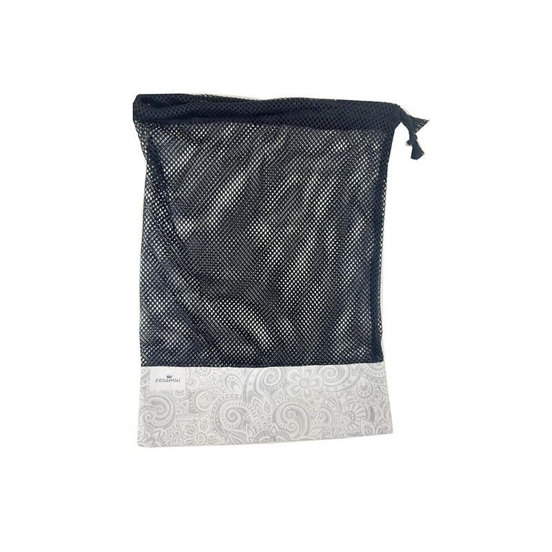 Fabricada en malla de poliéster de alta calidad, con cierre fácil de cuerda. Al ser de rejilla podrás comprobar de un vistazo rápido lo que tienes dentro.