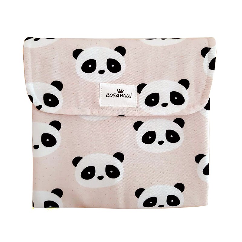 Cambiador de viaje o plegable para bebé de la colección oso panda rosa con puntitos de colores.