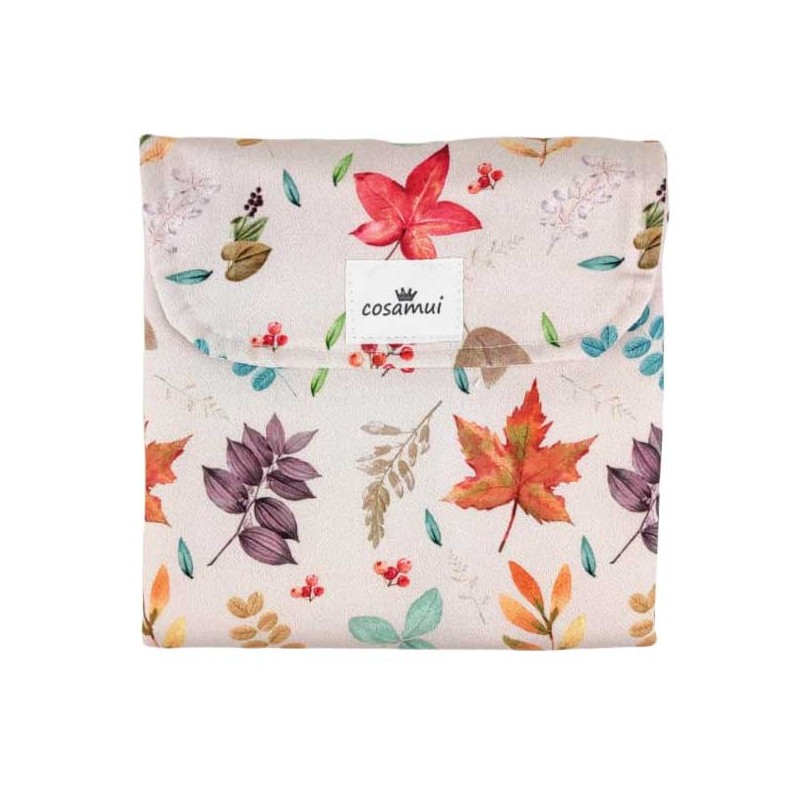 Cambiador de viaje o plegable para bebé hojitas leave. Confección y diseño exclusivo en cosamui.