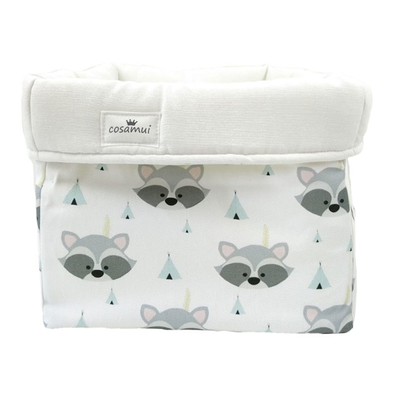 Cesto de almacenaje de la colección mapaches. Un tejido exclusivo de cosamui.