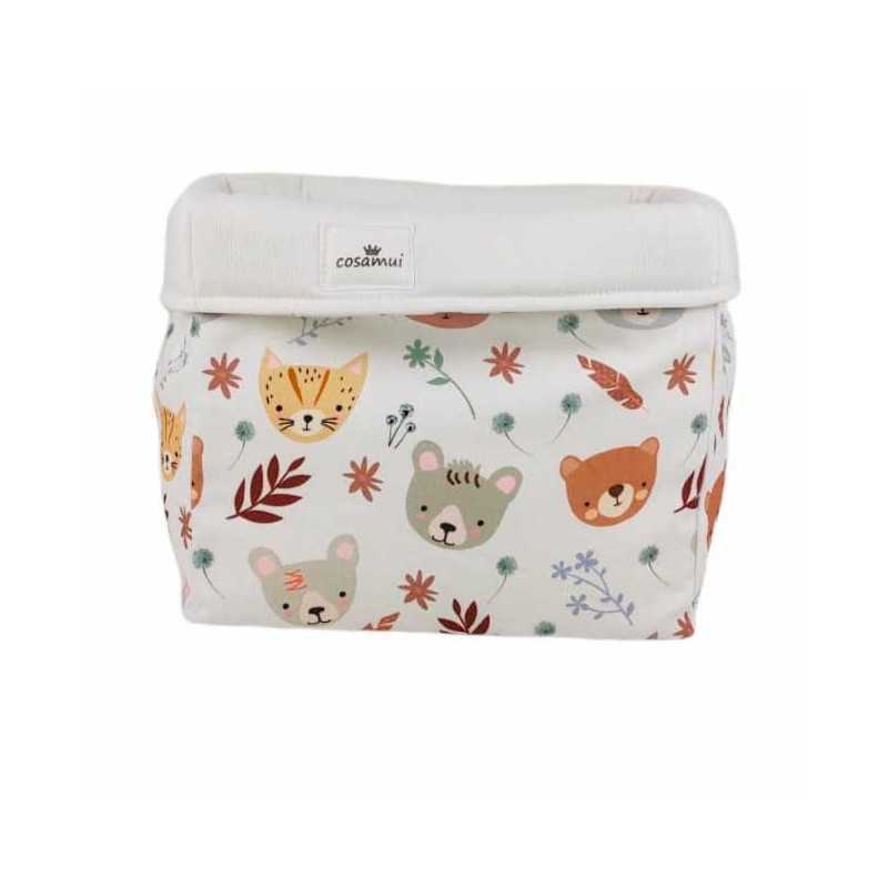 Cesto para almacenar todas las cositas del bebé , cremas, toallas, chupetes, etc. Así nunca más lo tendrás por ahí suelto. Colección exclusiva de cosamui animales del bosque (forest).