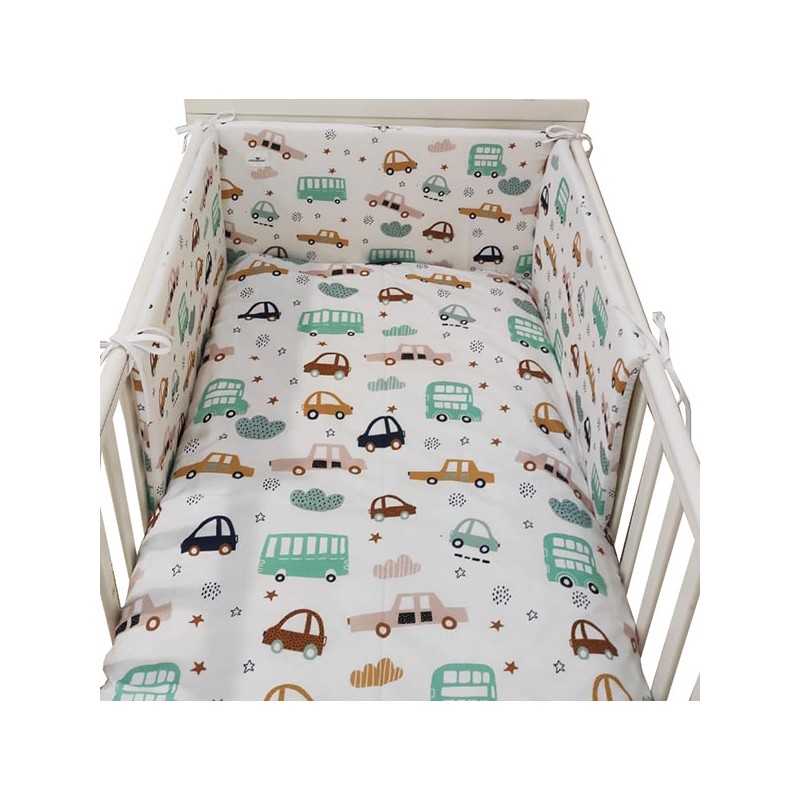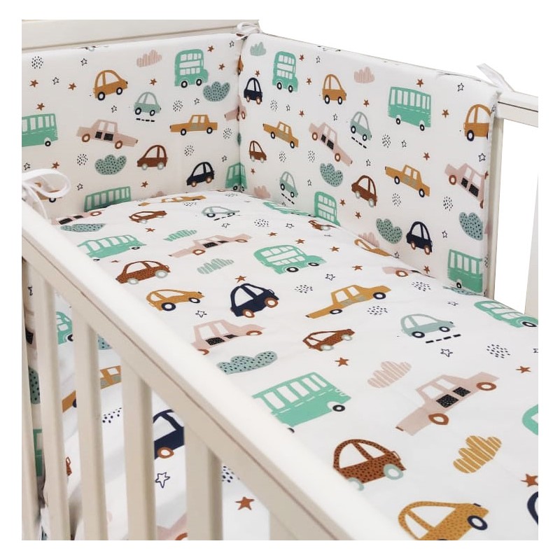 Chichonera para cuna 60x120 o 70x140 de nuestra colección de coches. Medidas 35 x 180 cm