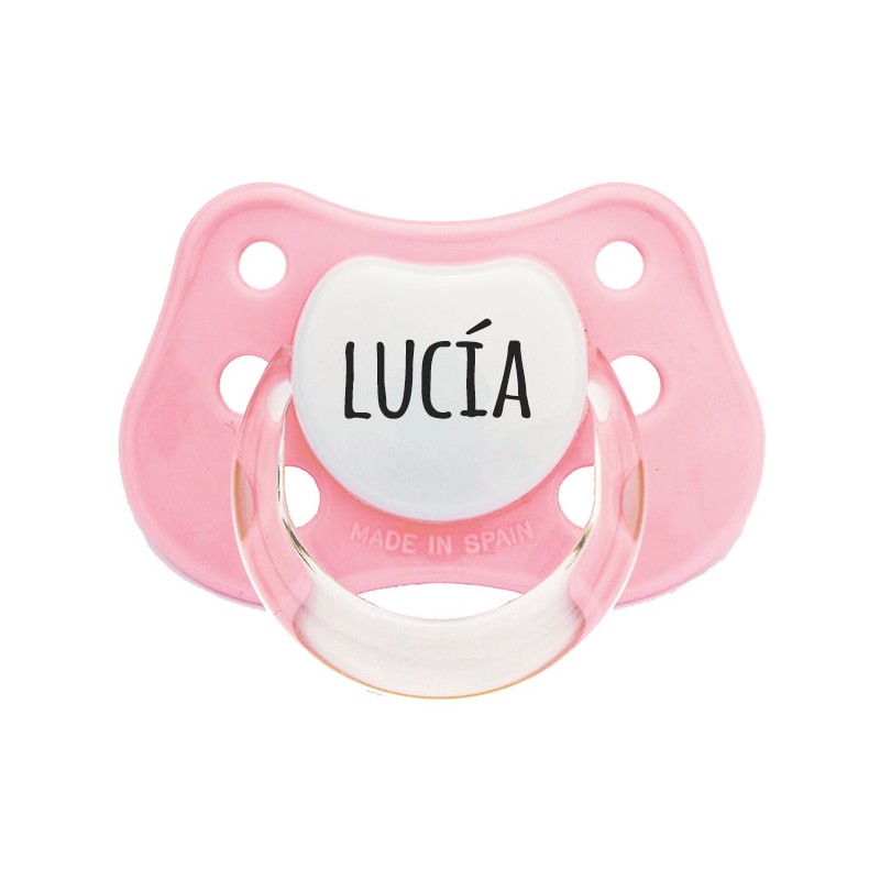 Chupete personalizado con nombre color rosa. Puedes personalizar el nombre de tu bebé en el chupete.