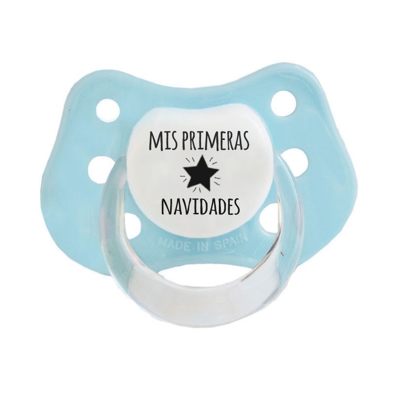 Chupete para bebé. Chupete Mis primeras navidades color azul. Un chupete especial para la navidad.