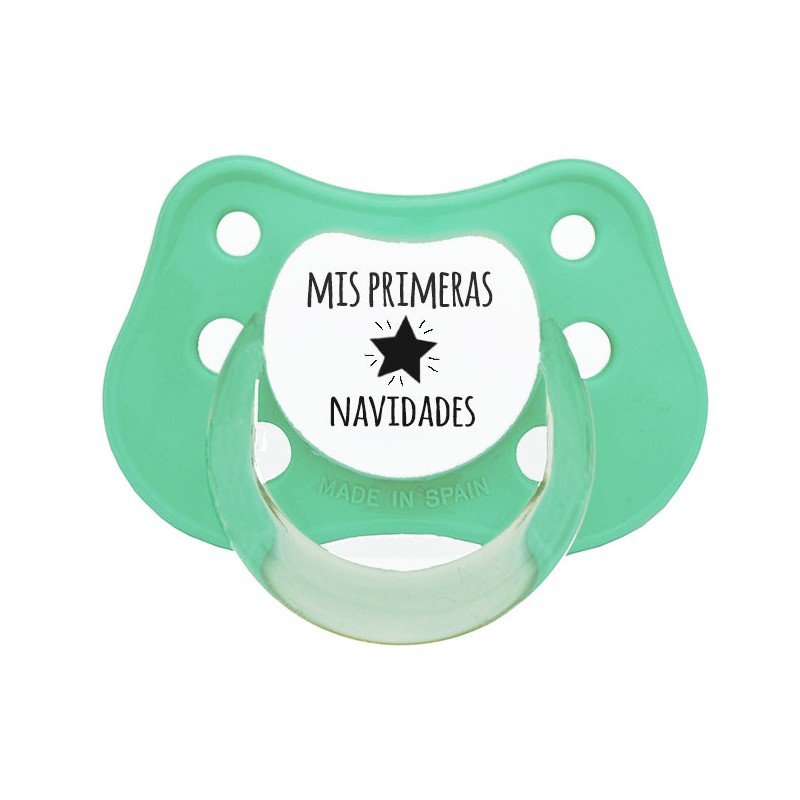 Chupete para bebé. Chupete Mis primeras navidades color verde mint. Un chupete especial para la navidad.