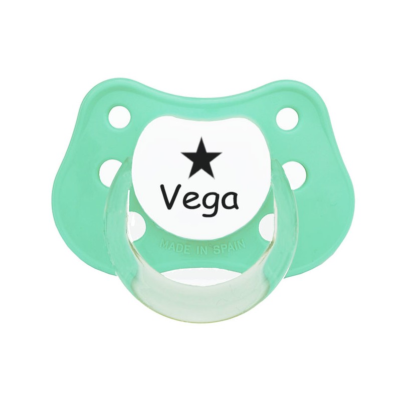 Chupete para bebé. Chupete personalizado color verde con nombre y una estrellita. Tetina de latex o silicona anatómicas.