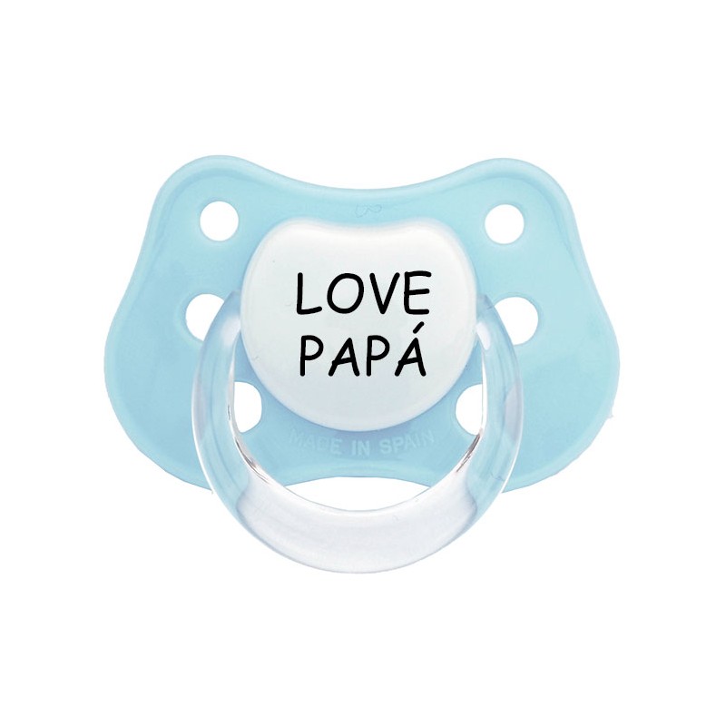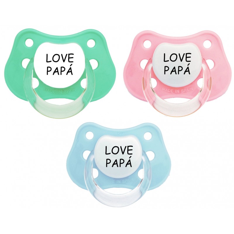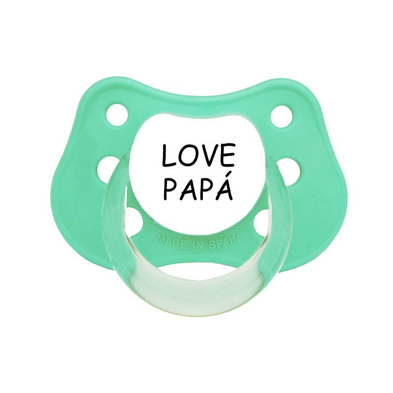 Chupete para bebé. Chupete LOVE PAPÁ en color azul, rosa y verde mint. Tetina de latex o silicona anatómicas.