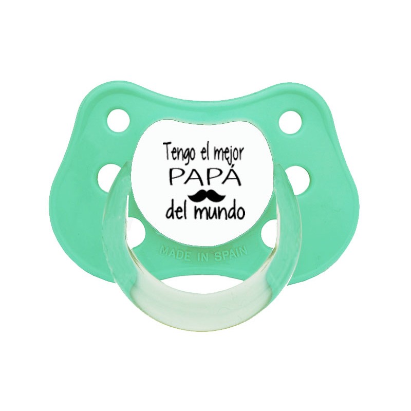 Chupete para bebé. Chupete Tengo el mejor PAPÁ del mundo en color azul, rosa y verde mint. Tetina de latex o silicona anatómicas.