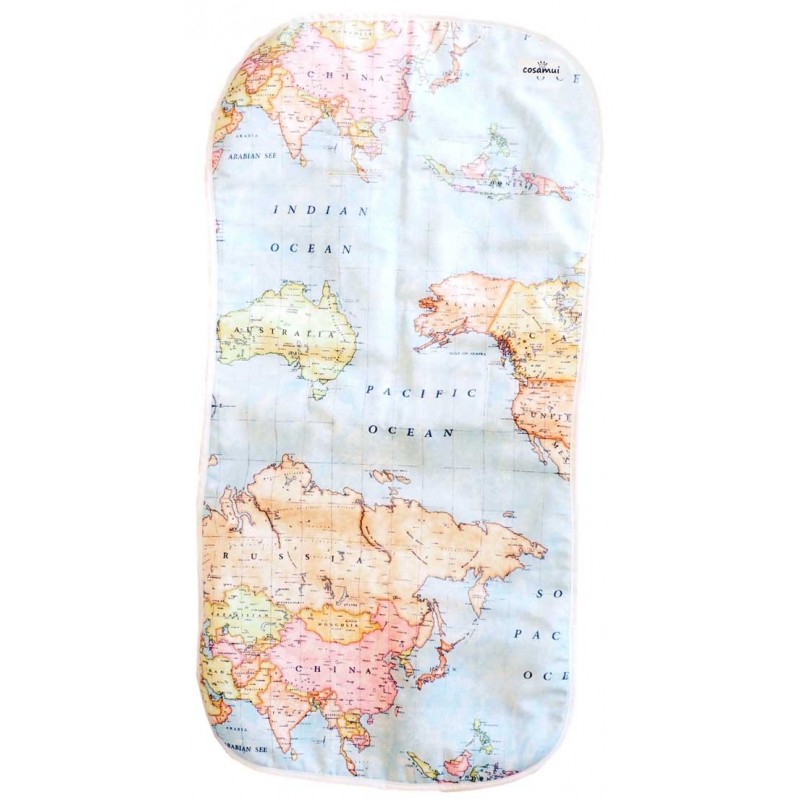 Colchoneta o funda para silla de paseo con detalles mapamundi.