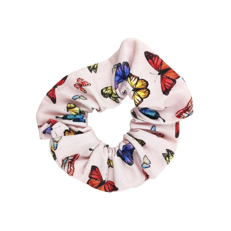 Scrunchie con diseño de mariposas para darle un toque ochentero.