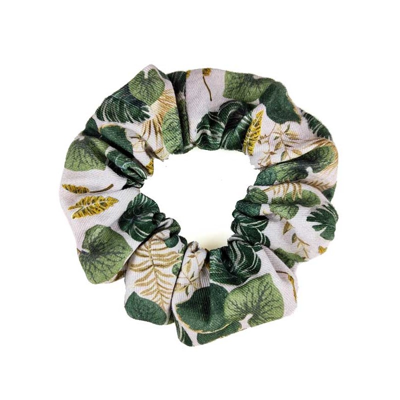 Scrunchie con diseño de la colección exclusiva cosamui selva para darle un toque ochentero.