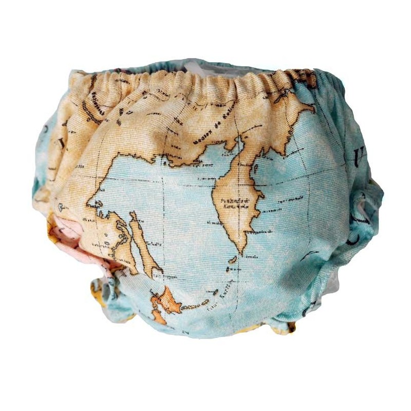Culottes o cubrepañales para bebé en acabado mapamundi. Diadema para bebé a juego, pincha aquí! También turbante para mamá, cojín de lactancia, bandana , babero ,cambiador, manta, mochila y neceser