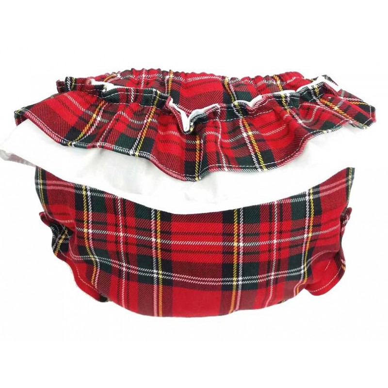 Cubrepañal para bebé con tejido escocés rojo y con volante en blanco. Pulsa aquí para ver la diadema a juego!