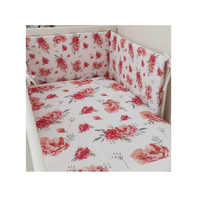 Funda nórdica para cuna 60x120 o 70x140 de nuestra colección exclusiva florencia de flores rosas. Medidas 135x105cm