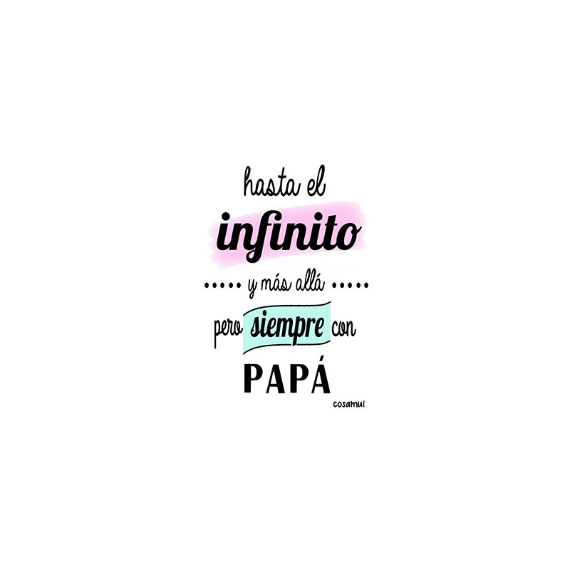 Lámina infantil, para la habitación del bebé. Con el diseño exclusivo cosamui "hasta el infinito y más allá pero siempre con PAPÁ" en color rosa. También lo tenemos en color azul.