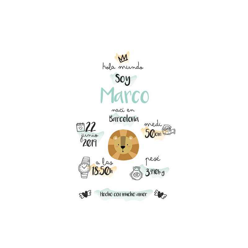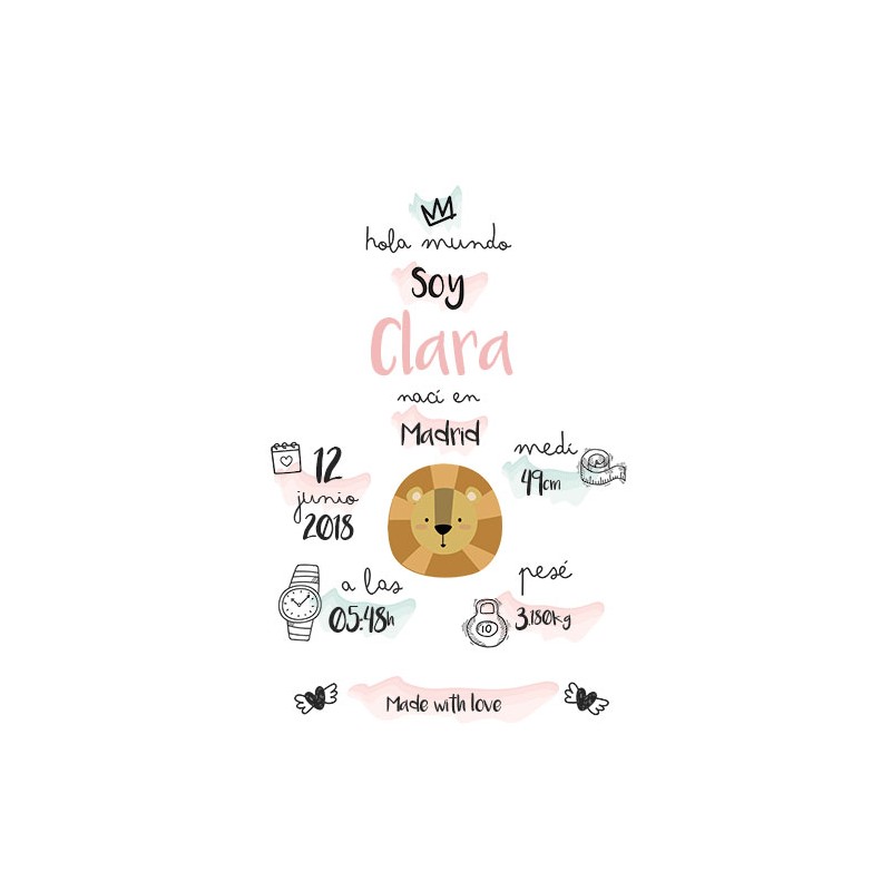 Lámina personalizada de nacimiento bebé recién nacido lion king. Pulsa aquí para ver el resto de la colección leones