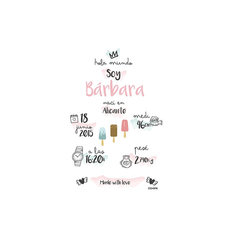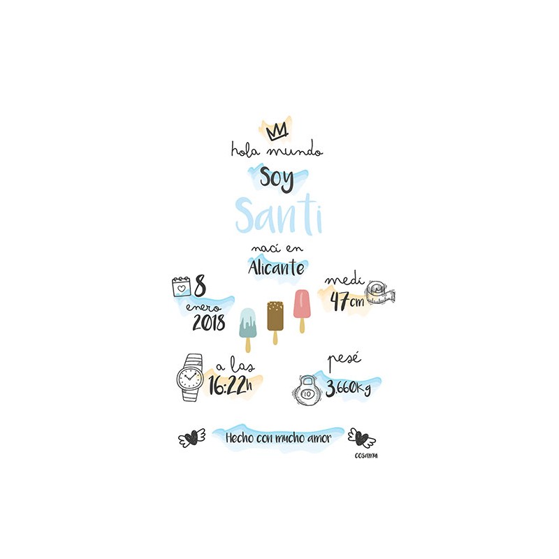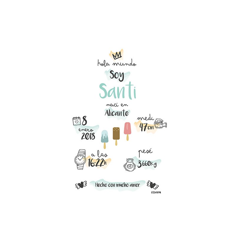 Lámina personalizada de nacimiento bebé recién nacido helados. Pulsa aquí para ver el resto de la colección