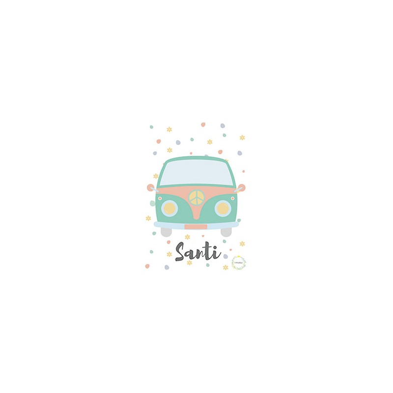 Lámina de la colección furgonetas personalizada con el nombre del bebé.