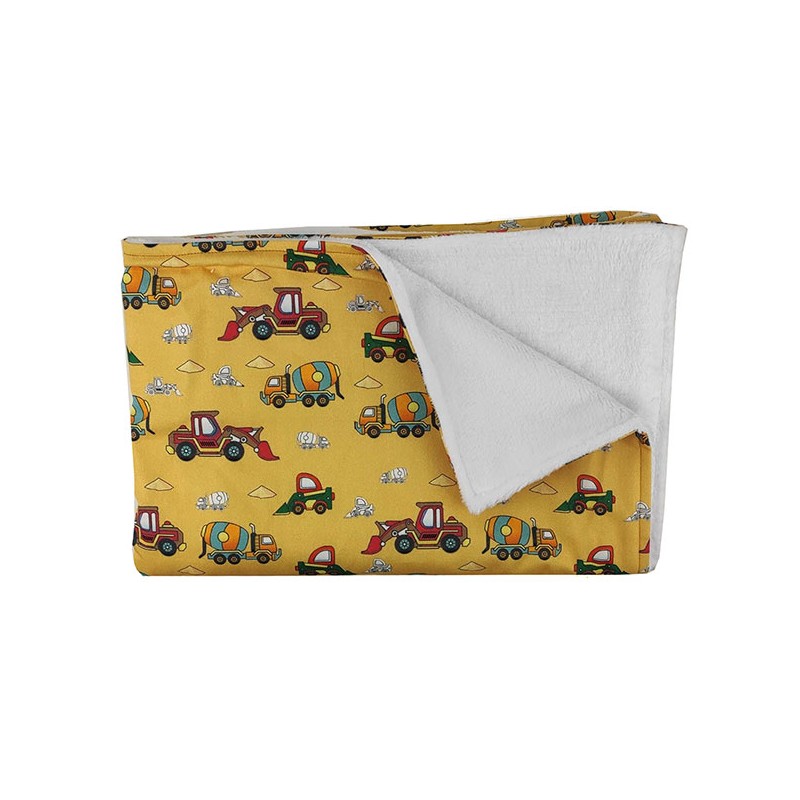 Manta arrullo para bebé para cochecito de paseo o para cuna coleción excavadoras. Colección exclusiva de cosamui.
