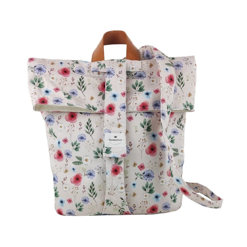 Mochila mujer de la colección margaritas azul. Diseño y confección cosamui.