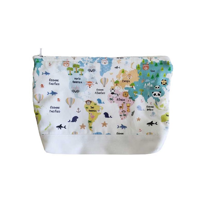 Neceser impermeable para guardar las cositas del bebé, cremas, chupetes, toallitas y llevarlo todo ordenado en el bolso... De nuestra colección exclusiva de cosamui mapamundi animal.