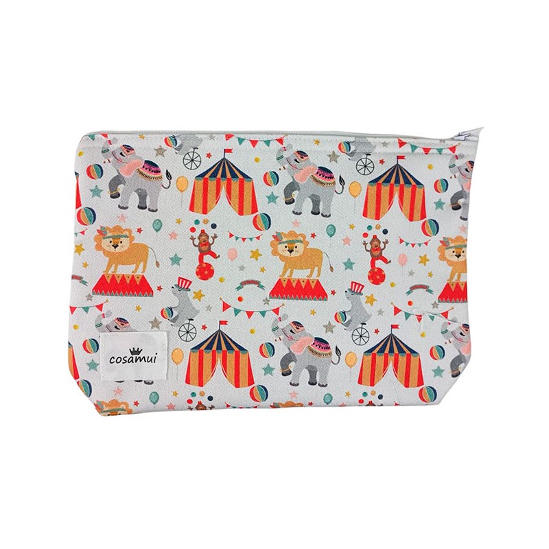 Neceser con interior impermeable de la colección circo. Perfecto para guardar todas las cositas del bebé o recien nacido, chupetes, cremitas, toallitas, etc.