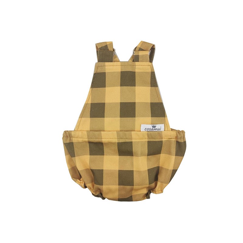 Peto abierto en la parte de atrás de la colección escocés mostaza. Diseño y confeccón exclusiva de cosamui. Si quieres ver el resto de productos de esta colección pulsa aquí.