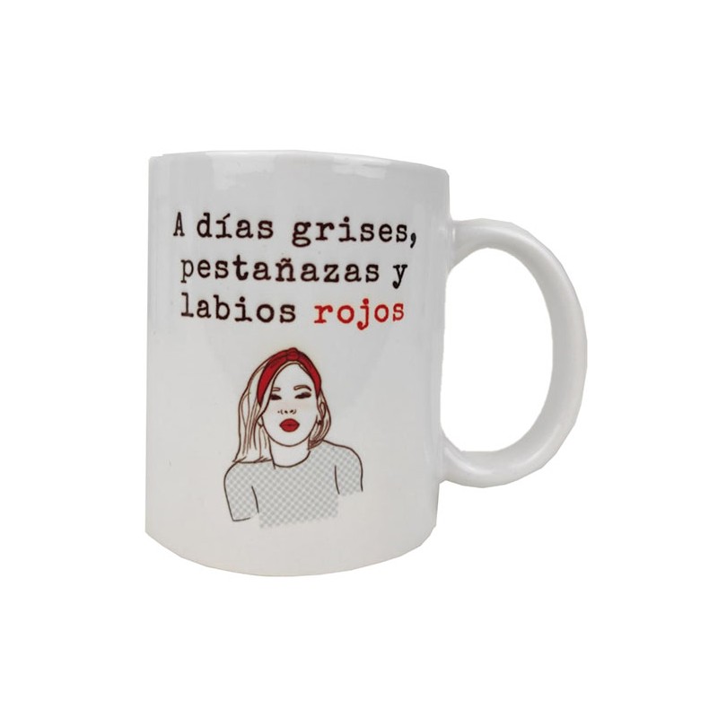 Esta taza te la mereces si estás pasando por un bajón. La vida sigue, asi que a días grises, pestañazas y labios rojos.